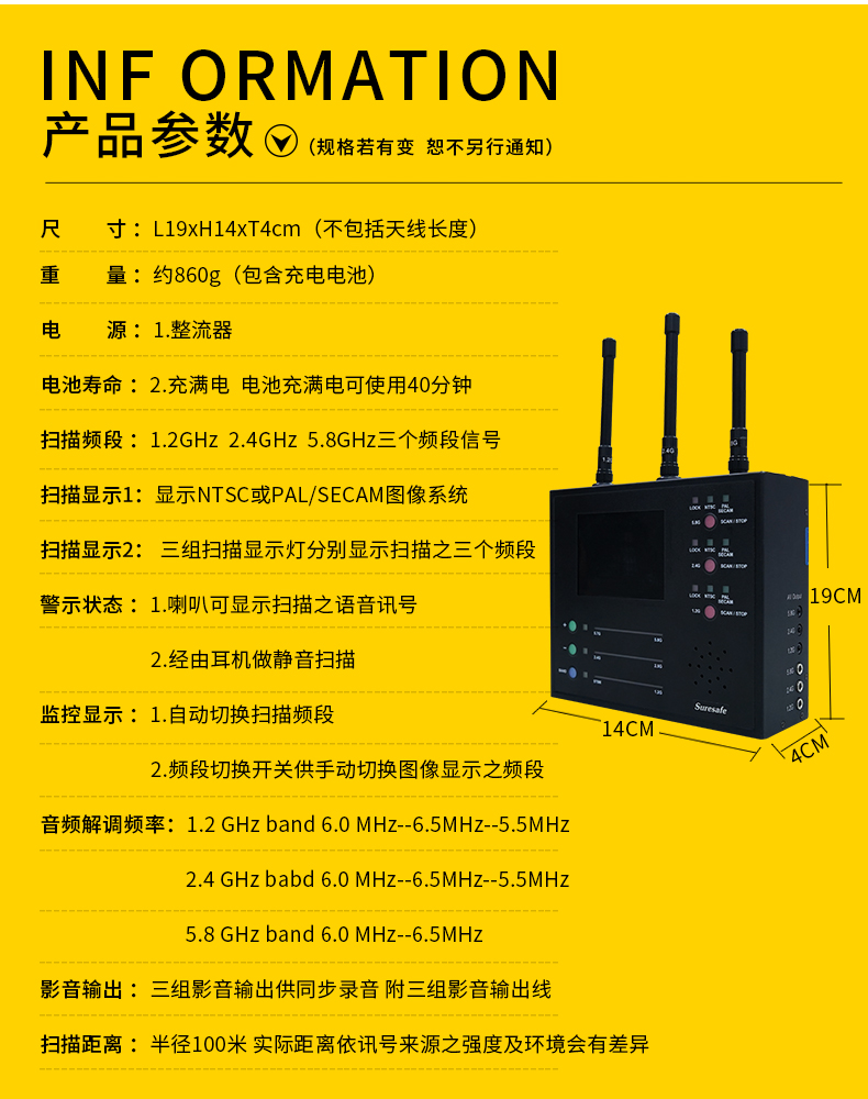 您的位置: 首頁 > 產品系列 > 國安保密 > 防竊聽設備 臺灣確保安VS-125無線針孔探測器