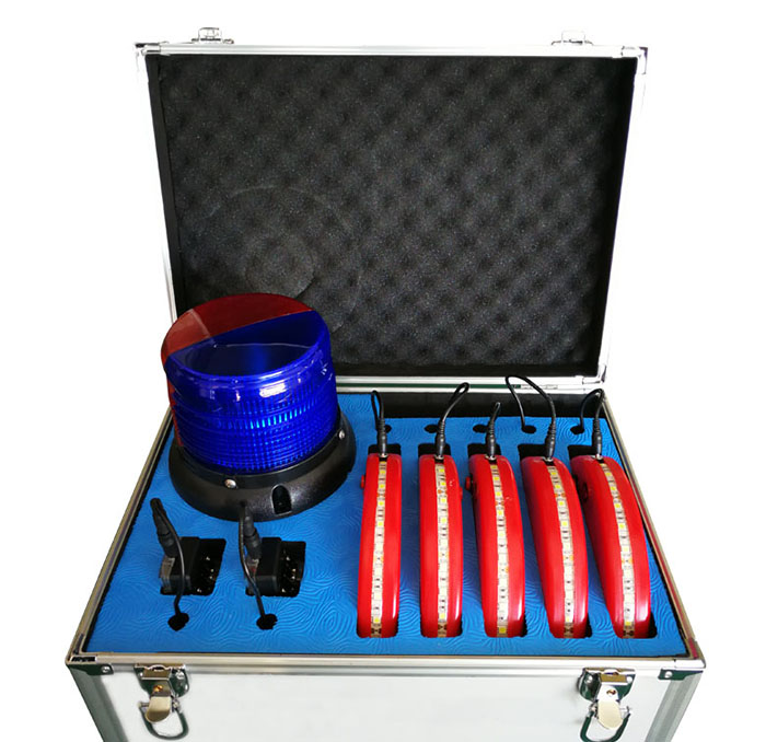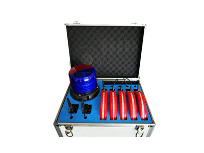 事故現(xiàn)場防闖入預(yù)警系統(tǒng)由四部分組成,分別為五個預(yù)警環(huán),兩個肩燈聲光預(yù)警接收器,一個預(yù)警燈,一個預(yù)警主機箱。
