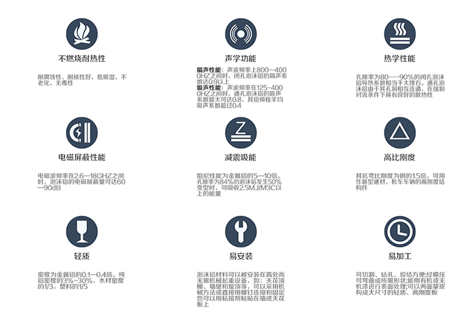 防彈泡沫氈(金屬防彈泡沫板)具有較高比剛度和比強(qiáng)度等優(yōu)良的力學(xué)性能,同時具有相對密度低、孔隙率高、比表面積大以及較好的吸聲、隔音、隔熱、散熱、阻燃、減振、阻尼、抗沖擊、電磁波屏蔽等多種物理性能。