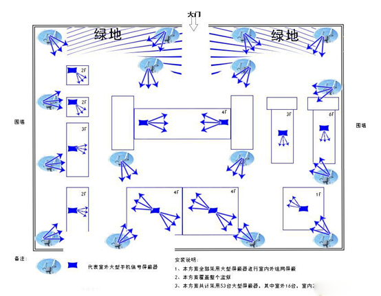 由上圖可以看出,采用傳統(tǒng)屏蔽器,要達到理想的屏蔽效果,首先需要加大設備的安裝密度,并需要精確計算天線的發(fā)射角度和方向,既要保證屏蔽效果,又要考慮周邊干擾問題。極難達成嚴格屏蔽。